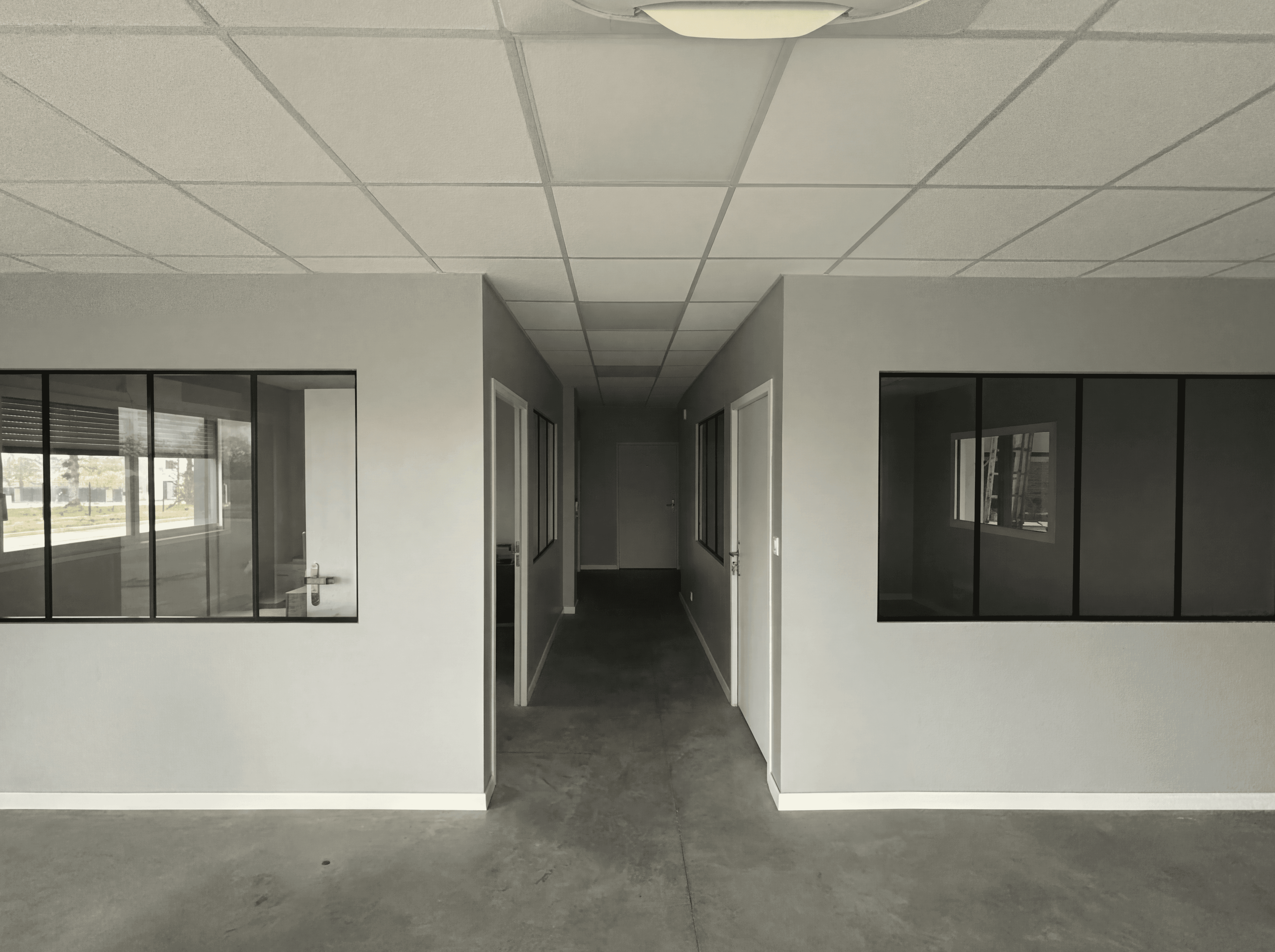 Travaux réalisés à Pipriac. Création complète des cloisons pour l’aménagement de bureaux, avec pose de verrières pour structurer les espaces tout en gardant la lumière. Pose des portes intérieures et des fenêtres pour un ensemble propre, fonctionnel et prêt à être utilisé au quotidien.
